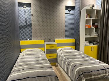 - 2 ədəd tək nəfərlik çarpayı (başlıqlar sarı-boz rəng kombinində)
