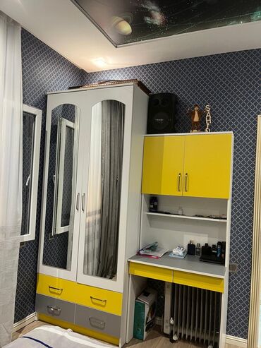 - 1 ədəd iki qapılı paltar şkafı: güzgülü qapılar, aşağı hissədə 2 sarı və 2 boz rəngli sürgülü çekmece