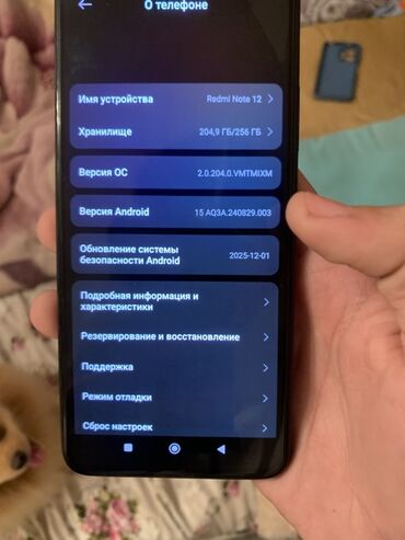 - Model: Redmi Note 12 (şəkildə “О телефоне” bölməsində göstərilir)