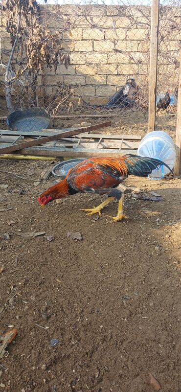 1il 2ayındadır tüləyini qurudur Cins: böyük bədənli döyüş tipli xoruz Rəng: qarışıq qara‑yaşıl, qırmızı və mis tonları Xüsusiyyətlər: - Uzun boyun, enli döş, güclü ayaqlar - Qısa daraq, iri...