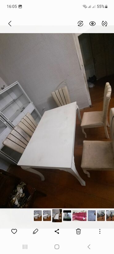 Ağ rəngdə masa və oturacaqlar dəsti - Dəst tərkibi: düzbucaqlı ağ masa və 4 ədəd ağ çərçivəli, bej oturacaq - Masa: sadə, müasir dizayn; düz səth; dörd dayaqlı konstruksiya; yemək otağı, mətbəx, k...