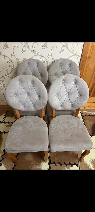 - Stullar: yumşaq oturacaq və bel hissəsi, düyməli (kapitone) tikiş detalları; taxta ayaqlar.