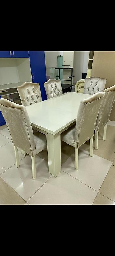 - Üstünlüklər: rahat oturuş, silinməsi asan stolüstü, klassikdən moderna uyğun bir neçə dizayn seçimi, 6 nəfər üçün ideal komplekt.
