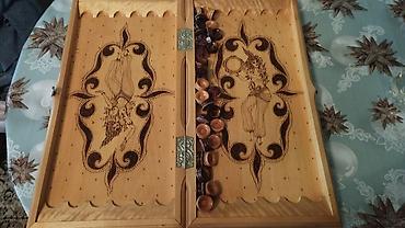 Ağac oyma nərd dəsti - Material: tam ağac (cilalanmış), əl işi oyma