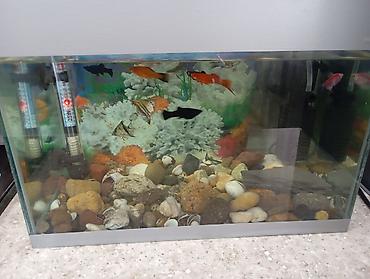 Endirim olacaq təcili satılır. Akvarium dəsti – tam komplekt - Şüşə akvarium: düzbucaqlı forma, ön/yan şüşələr yüksək şəffaflıqda. Üst hissədə LED işıqlanma paneli. - Filtrasiya və hava dövran...
