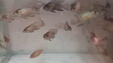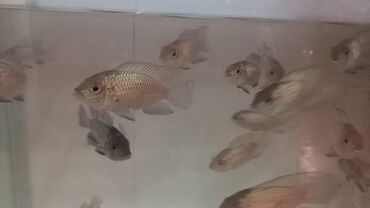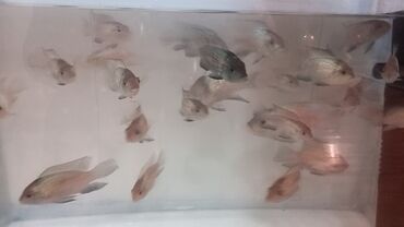 - Növ: dekorativ siklidlər (gövdəsi armudu formalı, iri pulcuqlu, yanlarda tünd ləkəli nümunələr var)