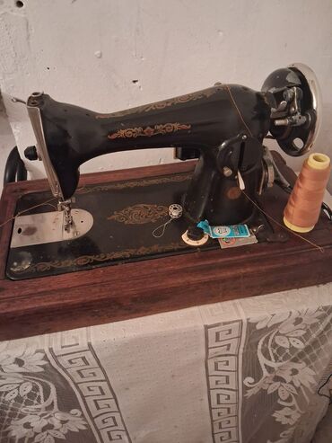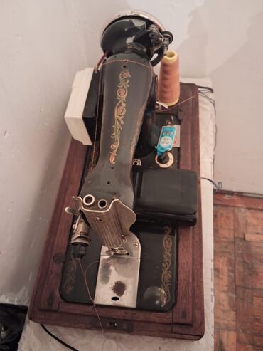 - Komlektasiya: pedalı olan maşın, üstündə iri sap makarası, metal şpulka, iynələr üçün kiçik qutu/etiketli aksesuar
