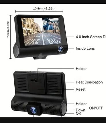 SUPER BIR REQISTRATOR.BOYUK SENSOR EKRANLI.Avtomobil DVR videoqeydiyyatçı – ön və arxa kamera dəsti - Ekran: 4 düym IPS toxunma ekran - Korpus: metal/alyuminiy ərintisi - Ön kamera: Full HD 1080P ...