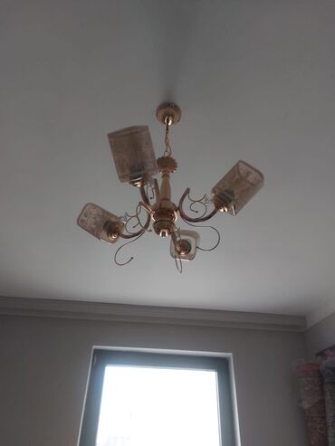 - Abajurlar: 5 ədəd, qalın şüşə, kvadrat-silindrik formalı, naxışlı, şəffaf-qızılı çalar.