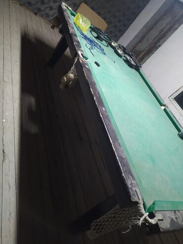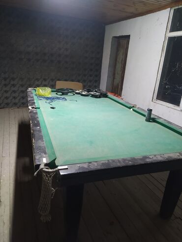 8 pool bilyard masasi, şarları,üçbucağı ve üstünde 4 eded kee taxtası verilir, mermer daşdır üzeri, demek olar ki işlenmiyib,avropa zavod malidir,elde duzelme deyil, tecili satıldığı üçün deyerinde...