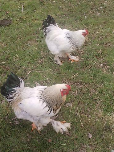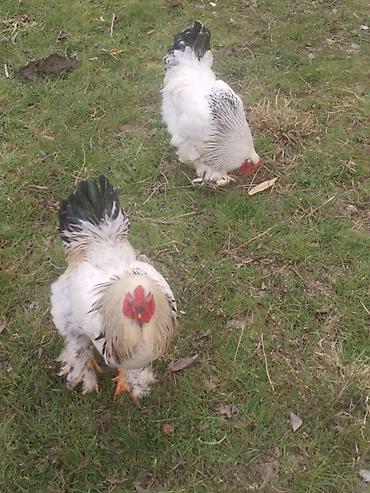 Brahma cinsi xoruzlar - Ağ rəngli, boyun və quyruq hissəsində