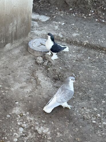 Ev göyərçinləri – iki ədəd - Rəng: biri açıq boz (boz qanadlar, qara zolaqlar, boyun hissəsində yaşıl-bənövşəyi parıltı), digəri tünd boz/qara tonlarda, boynunda metalik yaşıl-bənövşəyi parlaqlıq....