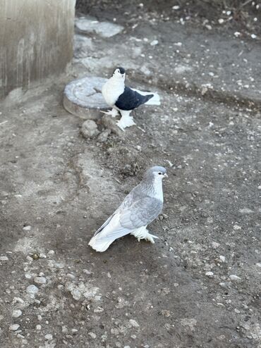Cütlük göyərçin - Növ: ev göyərçini (papaqburun/zərif başlı tip, dekorativ və uçuş üçün uyğundur) - Rənglər: biri tam ağ, digəri tünd (qara-boz tonlarında) kontrast quyruq ucları ilə - Cins: cüt k...