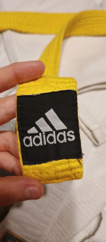 Adidas cüdo geyimi dəsti - Brend: Adidas - Rəng: ağ (mavi zolaqlı çiyinlər) - Tərkib: üst (gi ceket), şalvar, iki kəmər – ağ və sarı - Üstdə Adidas loqosu və üç zolaq, möhkəm toxunma parça, yanlar...