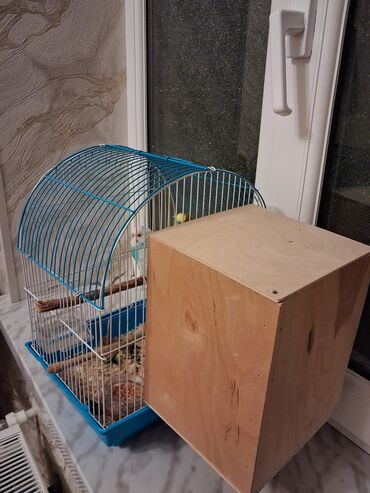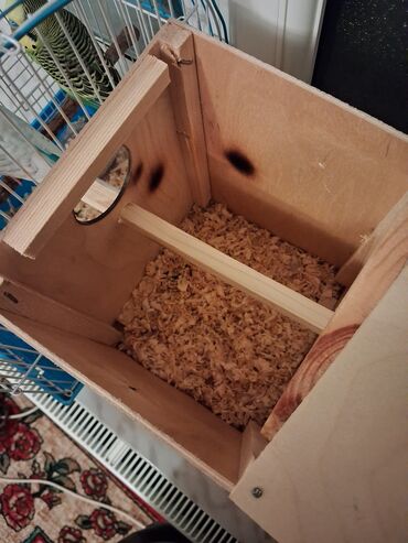 - Taxta yuvalıq/kutu (qəfəsin içində quraşdırılıb)