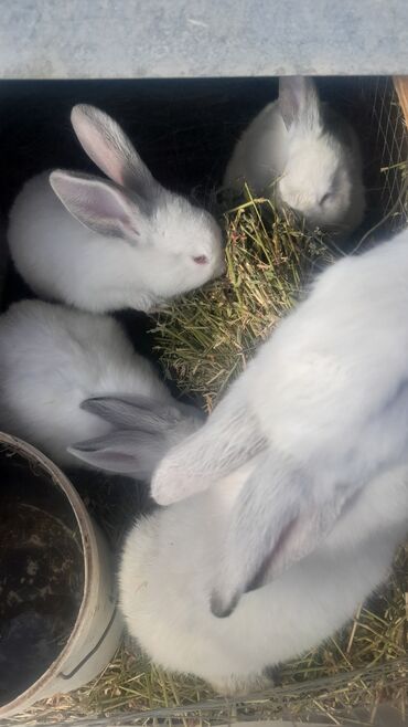 1 erkək 1 yaş. 2 dişi 9 aylıq. 16 ədəd 1 aylıq bala. 1 erkək 1 dişi 3 ay yarımlıq. Cəmi 21 əd təmiz qan kaliforniyalar. Ata analar xaricdən gəlib. kom halda satılır. Hamsı birlikdə 300 manat son qi...