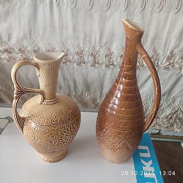 - Ölçü təsviri (təxmini görüntüyə əsasən): Hündür formalı sürahi daha incə və uca siluetdə, digəri isə daha enli gövdəli və qısa boğazlıdır.