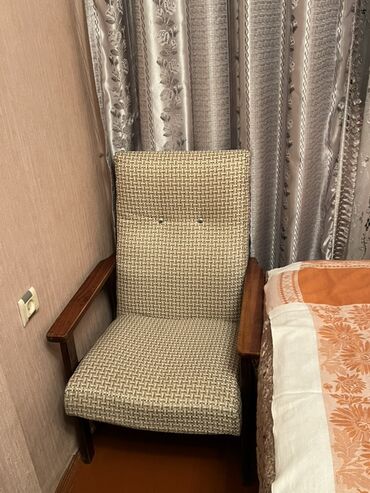 - Kreslo: Hündür arxa dayaq, iki düyməli dekor, ağac qol dayaqları