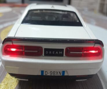 Maket avtomobil – Dodge Challenger SRT (ağ rəng, qara kapot və