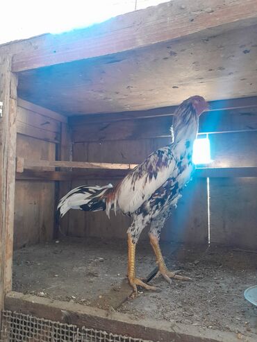Məhsul: Xoruz Təsvir: - Cinsə bənzər xüsusiyyətlər: uzun ayaqlar, yığcam bədən quruluşu, sərt quyruq lələkləri – oyun/azman tipli quruluş. - Rənglənmə: qızılı-qəhvəyi və qara qarışıq lələklər, boy...