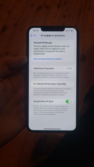 - “Pil Sağlığı və Şarj Etmə” bölməsində maksimum tutum 74% göstərilir