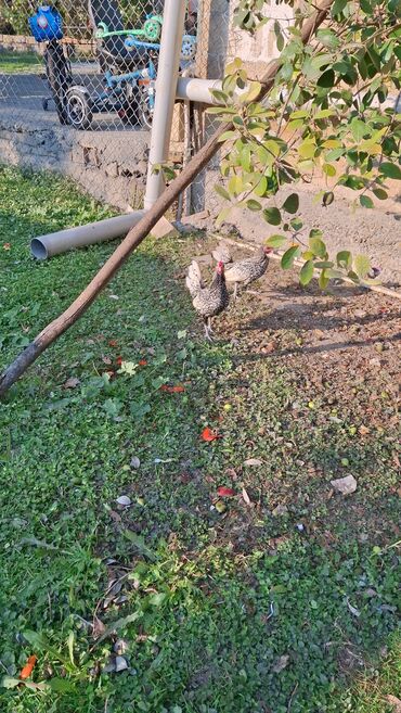 Heyratı xoruzlar. 5 aylıq heyratı xoruzları. Pleymut 6 -ədəd, Türk cinsi 2-ədəd .Pleymut xoruzlarını Xarkov toyuqları ilə cüt vurmaqla cox gözəl qarışıq hündür və böyük cücələ...