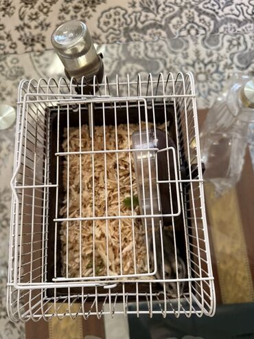 Dəst: xırda gəmiricilər üçün tam qəfəs və aksesuarları Təsvir: - Kompakt metal barmaqlıqlı qəfəs, altlıq üçün yonqar bölməsi ilə. - Ön hissədə asanlıqla çıxarılan su şüşəsi (şüşə içməliq) və yemlə...
