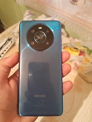 - Model: HONOR (mavi rəngdə), arxada dairəvi kamera moduluyla