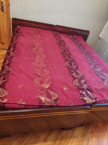 İki nəfərlik taxta çarpayı və döşək dəsti