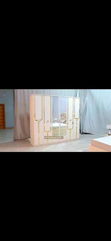 Yataq otağı mebel dəsti Tərkibi: - 6 qapılı qarderob: üç ədəd böyük güzgülü qapı, dekorativ gümüşü haşiyələr, əlverişli tutacaqlar. Geniş asılqan və rəf bölmələri ilə paltaryığma üçün ideal. - Tua...