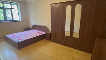 Yataq otağı mebel dəsti - Çarpayı: ikinəfərlik, taxta karkaslı, başlıq hissəsi sadə dizaynlı. Üstündə çəhrayı naxışlı örtü var (örtü daxil deyil). - Dolab: 3 qapılı geniş qarderob, tünd ağac rəngi...
