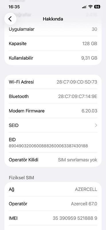 - SIM: Operator kilidi yoxdur (şəkildə “SIM sınırlaması yok”)