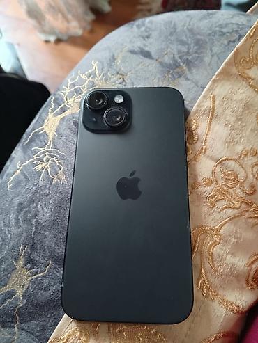 IPhone 15 (qara) - Rəng: Qara - Korpus: düz kənarlı alüminium çərçivə, şüşə arxa - Ekran: 6.1" Super Retina XDR OLED, Dynamic Island kəsiyi - Kameralar: arxada iki kamera bloku (Wide + Ultra Wide)...