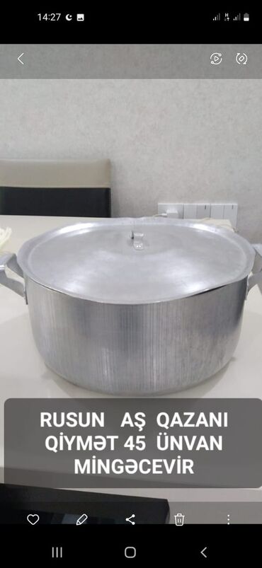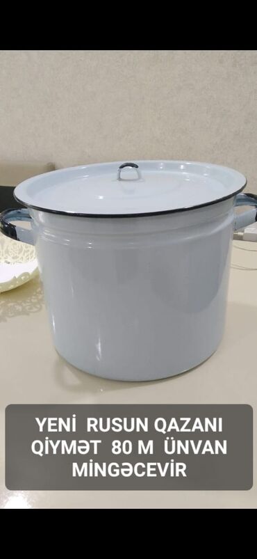 - Yeni “Rus” qazani – emallı səth, qapaq və tutacaqlar. Qoxu saxlamayan, asan yuyulan, məişət və məclis hazırlıqları üçün geniş həcmlidir.