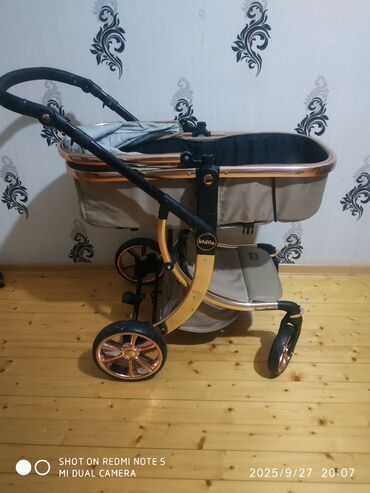 Uşaq arabası – çoxfunksiyalı, rahat və praktik model - Rəng: qara/qızılı tonlar - Karkas: yüngül və dayanıqlı metal çərçivə - Təkərlər: iri arxa, öndə fırlanan cüt təkər; hamar sürüş və manevr üçü...