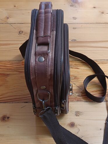Kişi çiyn çantası – qəhvəyi rəngdə, çoxgözlü model - Material: dəri