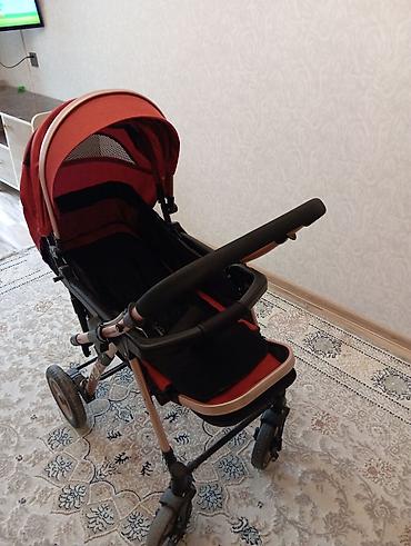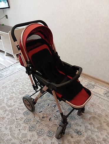 Uşaq arabası – yüngül və kompakt tip. Xüsusiyyətlər: - Rəng: qırmızı, iç hissədə rəngbərəng zolaqlı dizayn - Çərçivə: metal konstruksiya, qatlanan mexanizm - Təkərlər: 4 ədəd, ön təkərlər manevr ü...