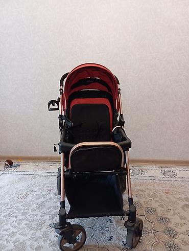 Uşaq arabası – qırmızı-bej rəng kombinasiya, iri təkərli model. Xüsusiyyətlər: - Tənzimlənən arxa dayaq – tam və yarı uzanmış mövqelər - Böyük, qatı günlüyə sahib başlıq (kapot) – əlavə külək qoru...