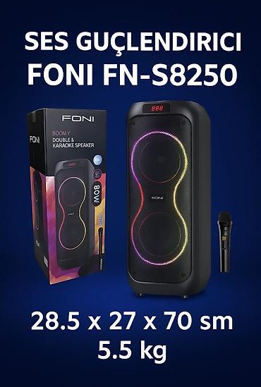 Foni FN-S8250 Boomy Double Karaoke dinamiki, daxili işıqlandırma sisteminə malikdir və əlavə mikrofonla birlikdə təklif olunur. Bu səs gücləndirici evdə əyləncə, kiçik tədbirlər və karaoke gecələri üçün uyğundur. Dinamik iki böyük səs çıxışına və yuxarı hissədə idarəetmə panelinə malikdir. Yığcam ölçüləri və daşıma qolu sayəsində asanlıqla yerini dəyişmək mümkündür. Dəstə daxil olan mikrofonla karaoke funksiyasından tam istifadə etmək mümkündür.