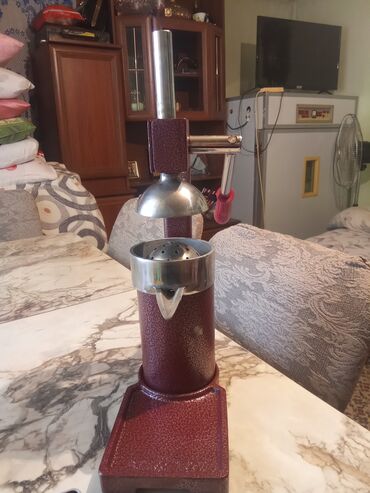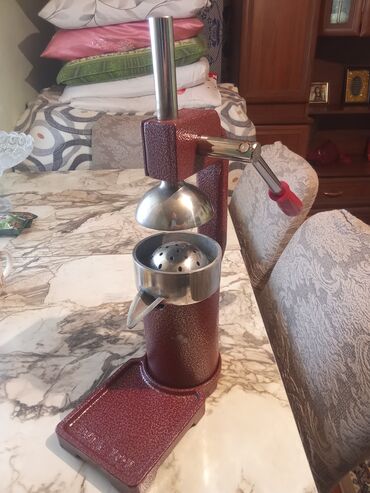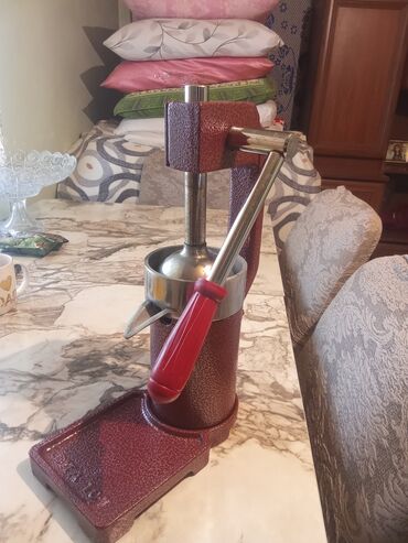 Ölçü və material görünən şəkillərdəki kimidir; istifadəsi sadədir: meyvəni iki yerə bölüb süzgəcə qoyun, qolu endirərək şirəni çıxarın.