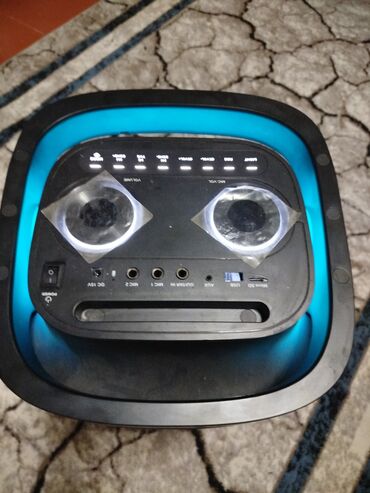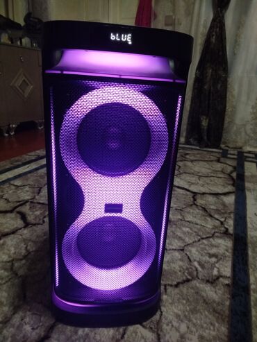 - Böyük ölçülü portativ kolon, ön paneldə iki böyük dinamik və LED işıqlandırma (rəng dəyişən effektlər)