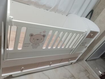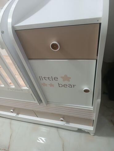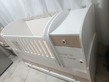 Rahat saxlama, praktik istifadə və şirin dizaynı ilə körpə otağı üçün funksional beşik-komod dəsti.