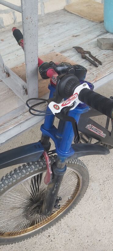 - Gücləndirilmiş alüminium/metal karkas, üst boruda “Shimano” və “MTB” stikerləri