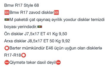 ⭕Barter mümkündür E46 üçün uyğun olan disklerlə R17-R18⭕