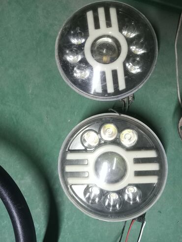 - Yuvarlaq avtomobil LED faraları (2 ədəd): çoxLED-lı dizayn, mərkəzi proyektor tipli modul, gündüz işıqlandırma üçün ağ işıq zolaqları; arxa hissədə alüminium soyuducu korpus, qara-qırmızı-ağ naqillərlə qoşulma.