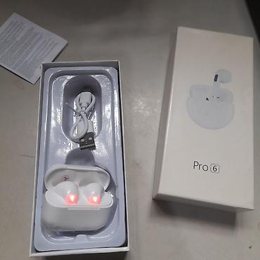 - Qutunun içində: iki ədəd Pro 6 TWS qulaqlıq, şarj qutusu, USB şarj kabeli, təlimat vərəqi
