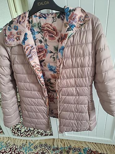 Yüngül şişmə qadın gödəkçəsi - Rəng: açıq pudra (solğun çəhrayı), içlik hissəsi qara - Model: kapüşonlu, üfüqi tikişli quilted dizayn s-m razmer az geyilib