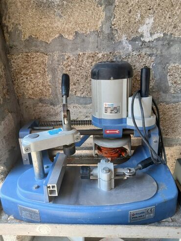 Alüminium və PVC üçün emal avadanlıqları dəsti Təsvir: - Kəsim mişarı: yuxarıdan endirmə tipli, bucaq üzrə kəsmə cədvəli və miqyas göstəricisi ilə. Sürətli bucaq tənzimləmə sektoru, material dayaq...