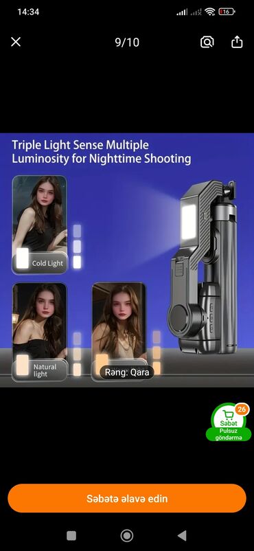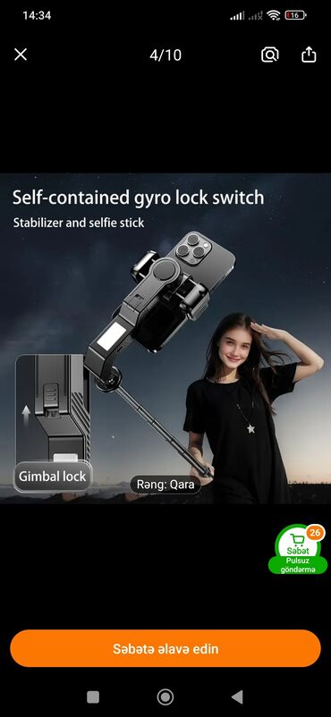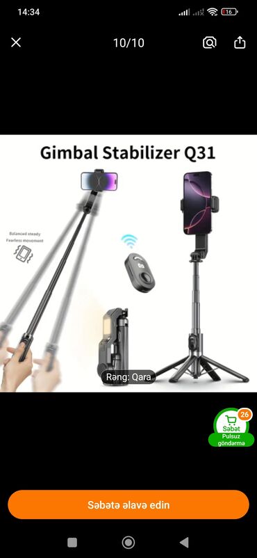 Smartfon üçün 3 oxlu əl stabilizatoru (gimbal) + aksesuar dəsti. Elan Mingəçevirdə yerləşir