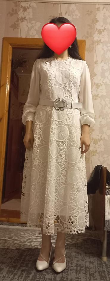 - Kəmər: Gümüşü böyük dekorativ tokalı ağ kəmər